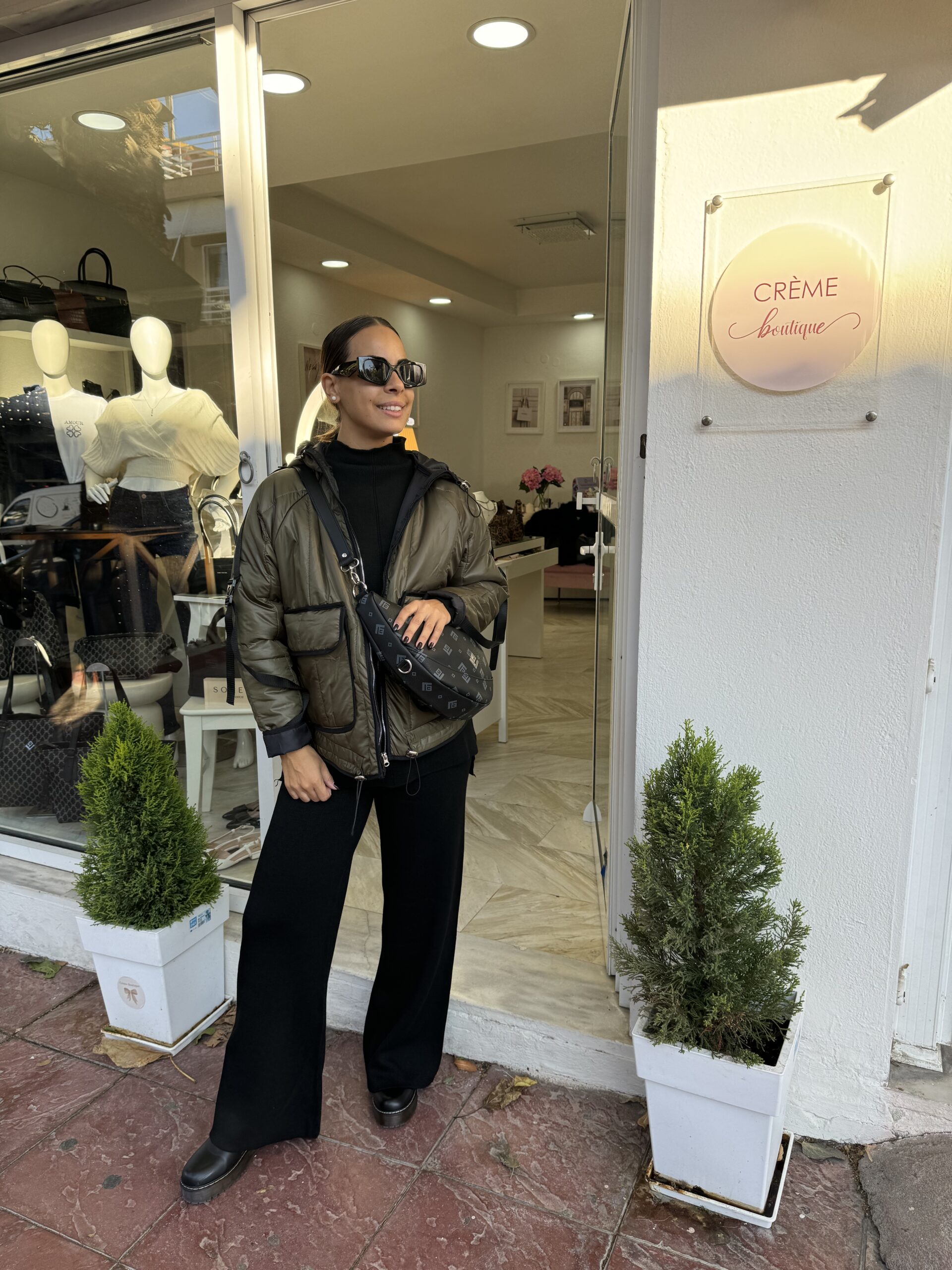 Κομψό καπιτονέ μπουφάν σε φίνα χακί απόχρωση, σχεδιασμένο για elegant καθημερινές εμφανίσεις με σύγχρονο χαρακτήρα. Η minimal γραμμή του συνδυάζεται αρμονικά με διακριτικές λεπτομέρειες, προσφέροντας άνεση και στιλ χωρίς υπερβολές.