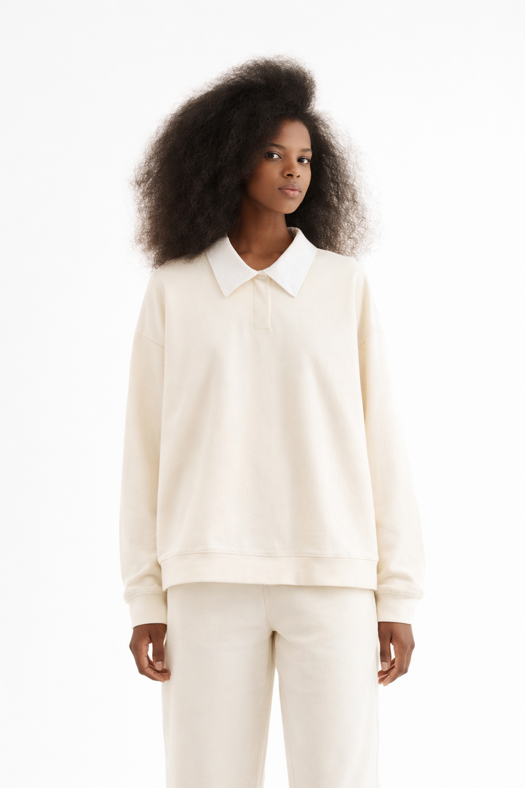 Σε απαλή ivory απόχρωση, με καθαρό structured γιακά και minimal γραμμή, αποτελεί ένα refined staple που συνδυάζει άνεση και διαχρονική κομψότητα.