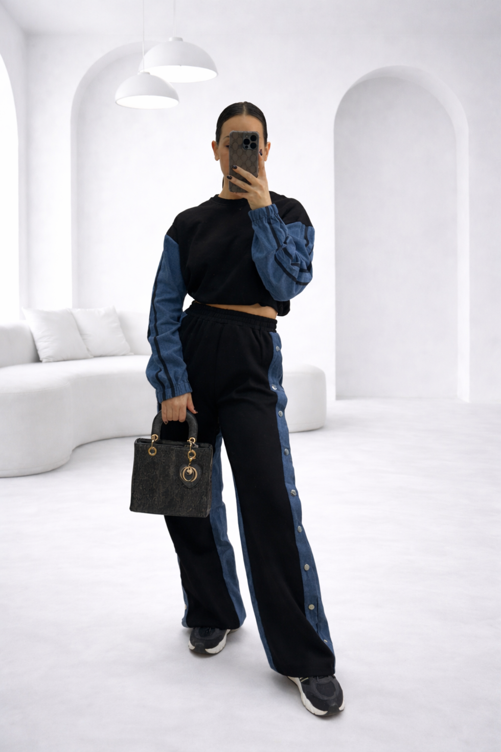 Contrast denim μανίκια